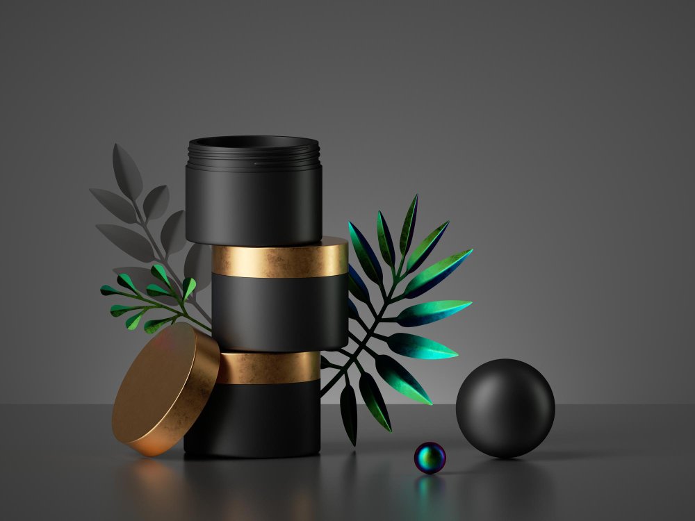 Product-style brand assets with depth and realism.